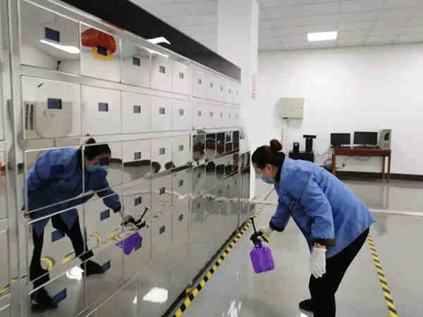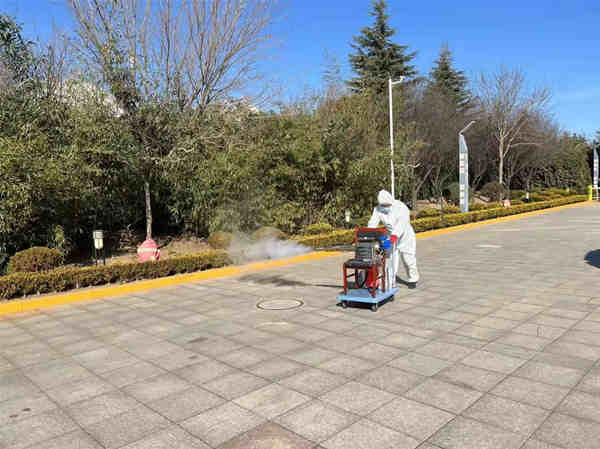 其中,萊西電業(yè)公司物業(yè)管理處面對近兩萬多平方的一小時一次的循環(huán)消毒消殺任務(wù),物業(yè)員工24小時住在項目,不間斷地忙碌。